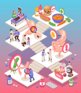 Isometric gastroenterology composition with stomach pain stomach treatment junk food and fast food medications